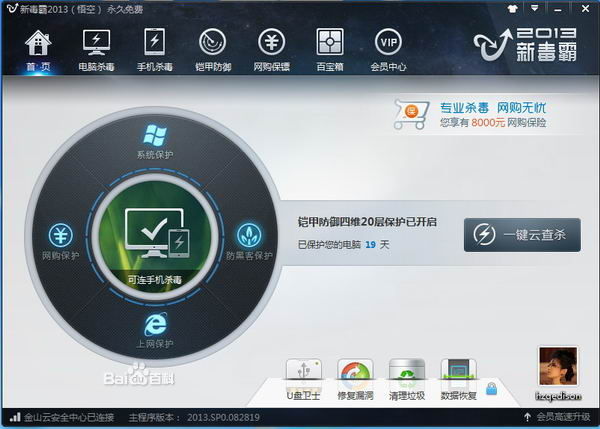 金山毒霸(Kingsoft Antivirus)是金山网络旗下研发的云安全智扫反病毒软件。融合了启发式搜索、代码分析、虚拟机查毒等经业界证明成熟可靠的反病毒技术,使其在查杀病毒种类、查杀病毒速度、未知病毒防治等多方面达到世界先进水平,同时金山毒霸具有病毒防火墙实时监控、压缩文件查毒、查杀电子邮件病毒等多项先进的功能。紧随世界反病毒技术的发展,为个人用户和企事业单位提供完善的反病毒解决方案。从2010年11月10日15点30分起,金山毒霸(个人简体中文版)的杀毒功能和升级服务永久免费。目前新毒霸(悟空)是最新版本的金山毒霸。