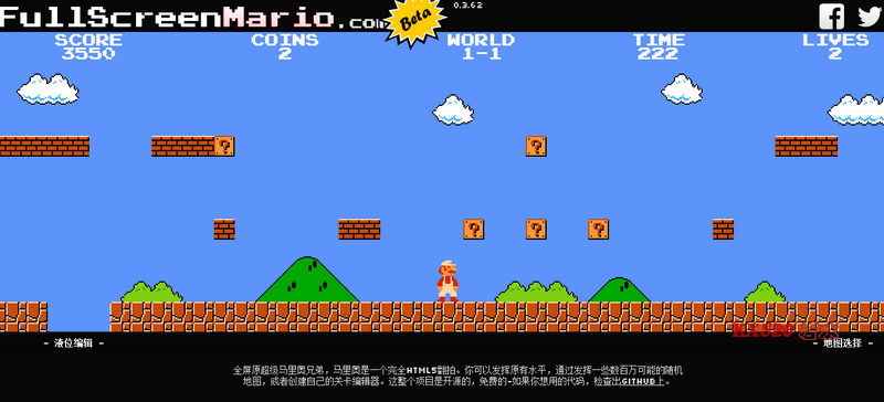网址:Full Screen Mario:http://www.fullscreenmario.com/
