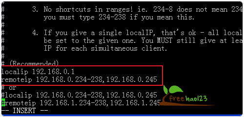 option /etc/ppp/pptpd-options localip 192.168.0.1 remoteip 192.168.0.234-238,192.168.0.245 |