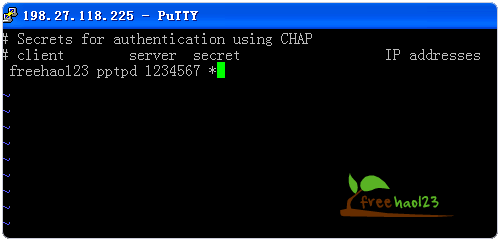 用户的格式是:用户名 pptpd “密码” *,如下图: