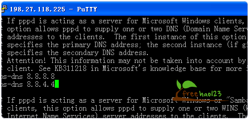 4、依次执行上面的命令,你得到的SSH账号是freehao123,密码是123456。代码中的freehao是用户组,这个组是没有登陆VPS的权限的。