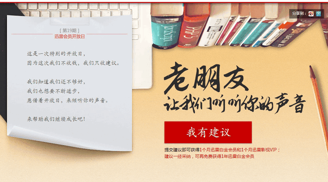 迅雷会员开放日来啦!迅雷网 免费送特权! 你只需提提建议!