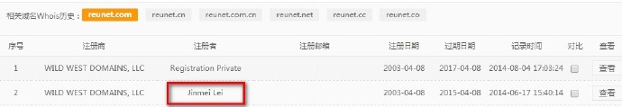 这么大一个公司,自己查查域名持有者吧。(现在已经对域名信息加密,但可到网站查询Whois历史http://www.benmi.com/whoishistory/reunet.com.html)